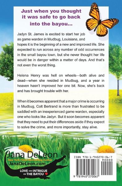 Just when you thought it was safe to go back into the bayou... Jadyn St. James is excited to start her job as game warden in Mudbug, Louisiana, and hopes it is the beginning of a new and improved life. She expected to run across any number of odd occurrences in the small bayou town, but she never thought her life would be in danger within a matter of days. And that's not even the worst thing. Helena Henry was hell on wheels-both alive and dead-when she resided in Mudbug, and a year in heaven hasn't improved her one bit. Now, she's back and has brought trouble with her. When it becomes apparent that a major crime is occurring in Mudbug, Colt Bertrand is more than frustrated to be saddled with an inexperienced game warden, especially one who looks like Jadyn. But it soon becomes apparent that they need to put their differences aside if they expect to solve the crime, and more importantly, stay alive.