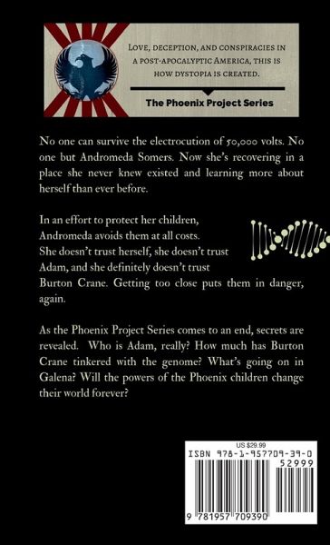No one can survive the electrocution of 50,000 volts. No one but Andromeda Somers. Now she's recovering in a place she never knew existed and learning more about herself than ever before. In an effort to protect her children, Andromeda avoids them at all costs. She doesn't trust herself, she doesn't trust Adam, and she definitely doesn't trust Burton Crane. Getting too close puts them in danger, again. As the Phoenix Project Series comes to an end, secrets are revealed. Who is Adam, really? How much has Burton Crane tinkered with the genome? What's going on in Galena? Will the powers of the Phoenix children change their world forever?