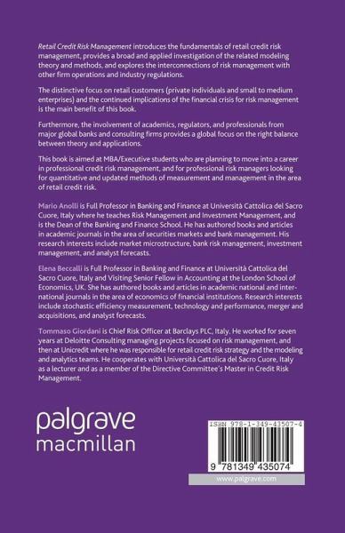 Introducing the fundamentals of retail credit risk management, this book provides a broad and applied investigation of the related modeling theory and methods, and explores the interconnections of risk management, by focusing on retail and the constant reference to the implications of the financial crisis for credit risk management.
