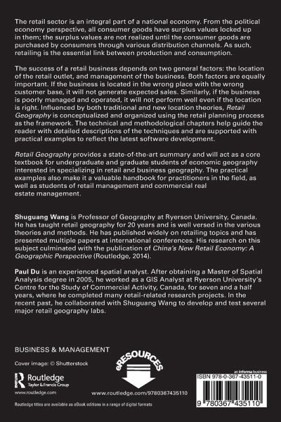 "A much needed and updated resource to address the changes in the physical retail landscape via an increased emphasis in logistics and geospatial technologies. Shuguang Wang and Paul Du's Retail Geography builds on the previous literature in the field, reflecting on the many advances in geospatial technologies through the lens of market segmentation, the external retail environment, trade areas and site election (regional and site level) and the importance of logistics." - Brett J. Lucas, MA; Chair (2018-2020) of the Business Geography Specialty Group of the American Association of Geographers