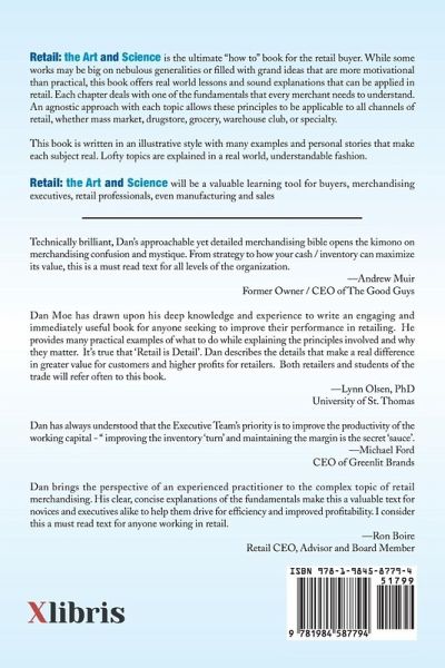 Retail: the Art and Science is the ultimate "how to" book for the retail buyer. While some works may be big on nebulous generalities or filled with grand ideas that are more motivational than practical, this book offers real world lessons and sound explanations that can be applied in retail. Each chapter deals with one of the fundamentals that every merchant needs to understand. An agnostic approach with each topic allows these principles to be applicable to all channels of retail, whether mass market, drugstore, grocery, warehouse club, or specialty. This book is written in an illustrative style with many examples and personal stories that make each subject real. Lofty topics are explained in a real world, understandable fashion. Retail: the Art and Science will be a valuable learning tool for buyers, merchandising executives, retail professionals, even manufacturing and sales