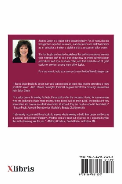 "I found these books to be an easy and concise step-by-step road map to operating a more profitable salon." -Bob Loffredo, Barrington, former RI Regional Director for Dessange International Hair Salon Chain "If a salon owner is looking for help, these books offer the necessary tools; for salon owners who are looking to make more money, these books will be their guide. The books are very informative and contain excellent information all around; they are much needed in the industry." -Susan Pugh, Account Executive for Masiello's Beauty Distributorship "I absolutely recommend these books to anyone who is looking to build their career and become a success in the beauty industry...Whether you are fresh out of school or a seasoned stylist, this is the learning tool for you." -Melody Goodhue, Booth Renter in Boston, MA