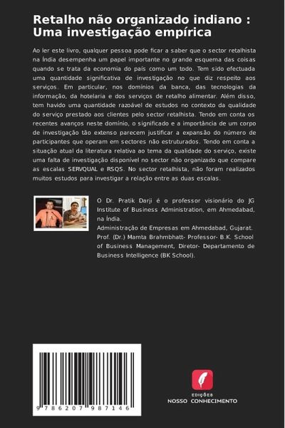 Ao ler este livro, qualquer pessoa pode ficar a saber que o sector retalhista na Índia desempenha um papel importante no grande esquema das coisas quando se trata da economia do país como um todo. Tem sido efectuada uma quantidade significativa de investigação no que diz respeito aos serviços. Em particular, nos domínios da banca, das tecnologias da informação, da hotelaria e dos serviços de retalho alimentar. Além disso, tem havido uma quantidade razoável de estudos no contexto da qualidade do serviço prestado aos clientes pelo sector retalhista. Tendo em conta os recentes avanços neste domínio, o significado e a importância de um corpo de investigação tão extenso parecem justificar a expansão do número de participantes que operam em sectores não estruturados. Tendo em conta a situação atual da literatura relativa ao tema da qualidade do serviço, existe uma falta de investigação disponível no sector não organizado que compare as escalas SERVQUAL e RSQS. No sector retalhista, não foram realizados muitos estudos para investigar a relação entre as duas escalas.