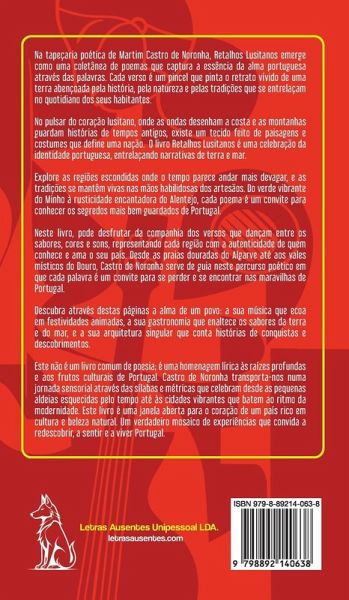 Embark on an unforgettable poetic journey through the heart of Portugal with "Retalhos Lusitanos" by Martim Castro de Noronha. This collection transcends mere words, weaving a vibrant tapestry of history, nature, and tradition. Immerse yourself in rhythmic verses that paint vivid portraits of sun-drenched beaches, vine-covered terraces, and charming villages where time seems to stand still. Each poem invites you to explore Portugal's hidden gems, from the lush landscapes of Minho to the rustic allure of Alentejo. Savor the sensory delights that come alive on the page. Castro de Noronha serves as your guide, leading you through lively festivals, breathtaking landscapes, and awe-inspiring architecture-each word is a treat for the senses. This isn't your average poetry book; it's a heartfelt tribute to the rich tapestry of Portuguese culture. Experience the essence of a people through their music and captivating tales, whispered through ancient stones and echoing in bustling cityscapes. Rediscover, feel, and embrace Portugal's essence. Open the window to a land overflowing with natural splendor and cultural treasures. Retalhos Lusitanos is a mosaic of experiences waiting to be explored.