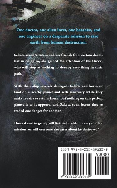 WINNER OF THE 2020 LEAGUE OF UTAH WRITERS' SILVER QUILL AWARD! One doctor, one alien, one botanist, and one engineer are on a desperate mission to save earth from human destruction. Sakota saved Astraeus and her friends from certain death, but in doing so, she gained the attention of the Oreck, who will stop at nothing to destroy everything in their path. With their ship severely damaged, Sakota and her crew land on a nearby planet and seek sanctuary while they make repairs to return home. But nothing on this perfect planet is as it appears, and Sakota soon learns they've traded one danger for another. Hunted and targeted, will Sakota be able to carry out her mission, or will everyone she cares about be destroyed?