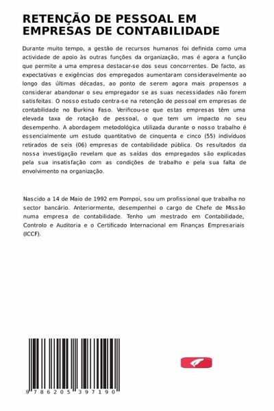Durante muito tempo, a gestão de recursos humanos foi definida como uma actividade de apoio às outras funções da organização, mas é agora a função que permite a uma empresa destacar-se dos seus concorrentes. De facto, as expectativas e exigências dos empregados aumentaram consideravelmente ao longo das últimas décadas, ao ponto de serem agora mais propensos a considerar abandonar o seu empregador se as suas necessidades não forem satisfeitas. O nosso estudo centra-se na retenção de pessoal em empresas de contabilidade no Burkina Faso. Verificou-se que estas empresas têm uma elevada taxa de rotação de pessoal, o que tem um impacto no seu desempenho. A abordagem metodológica utilizada durante o nosso trabalho é essencialmente um estudo quantitativo de cinquenta e cinco (55) indivíduos retirados de seis (06) empresas de contabilidade pública. Os resultados da nossa investigação revelam que as saídas dos empregados são explicadas pela sua insatisfação com as condições de trabalho e pela sua falta de envolvimento na organização.