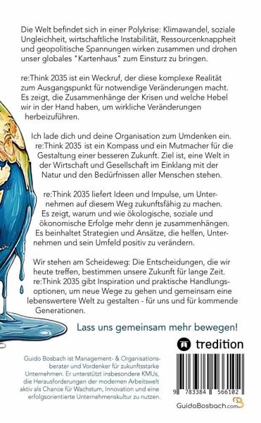 Die Welt im Krisenmodus - Bist du bereit für die Zukunft?Fühlst du dich auch oft überwältigt von den Nachrichten über Klima, Wirtschaft und gesellschaftliche Spannungen? Spürst du, dass ein einfaches "weiter so" dein Unternehmen, deinen Arbeitgeber und deine Zukunft gefährdet? Wenn du nach Orientierung, Hoffnung und konkreten Wegen suchst, ist "re:Think 2035" dein unverzichtbarer Begleiter.Dieses Buch ist mehr als eine Krisenanalyse. Es ist ein kraftvoller Weckruf und zugleich ein inspirierender Kompass. Guido Bosbach nimmt dich mit auf eine Reise: von der schonungslosen Bestandsaufnahme der heutigen "Polykrise" hin zu einer begeisternden Vision für das Jahr 2035 - eine Zukunft, die lebenswert ist und die wir aktiv gestalten können.Entdecke die entscheidende Rolle, die Unternehmen spielen können! "re:Think 2035" zeigt eindrucksvoll, wie Firmen - gerade auch KMUs - vom Getriebenen zum Motor des Wandels werden und Verantwortung für das Gemeinwohl übernehmen, ohne dabei den wirtschaftlichen Erfolg aus den Augen zu verlieren.Profitiere von:- einer klarer Analyse: Verstehe die komplexen Zusammenhänge der aktuellen Krisen.- einer mutmachenden Vision: Lasse dich vom "Lust-Szenario 2035" inspirieren.- konkreten Handlungsfeldern: Erhalte Impulse für individuelle, unternehmerische und gesellschaftliche Veränderungen.- praktischen Werkzeugen: Nutze direkt anwendbare "Methodenimpulse" für dein Management und deine Organisation.- echten Beispielen: Lerne von "Pionieren des Wandels", die bereits erfolgreich neue Wege gehen.- den Prinzipien zukunftsstarker Organisationen: Erfahre alles über die Prinzipien der "living smart organization" - von Vertrauen über Vernetzung bis zu gelebter Menschlichkeit.- dem Aufbau einer gesteigerten Lösungskompetenz: Entwickle die Schlüsselqualifikation, um Herausforderungen kreativ und effektiv zu meistern."re:Think 2035" ist das Handbuch für alle Mutigen - Unternehmer_innen, Führungskräfte, Mitarbeiter_innen -, die bereit sind, alte Denkmuster zu durchbrechen, Verantwortung zu übernehmen und die Zukunft ihres Unternehmens und unserer Gesellschaft aktiv zu gestalten.