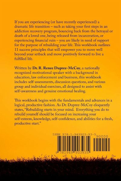 If you are experiencing (or have experienced) a dramatic life transition-such as taking your first steps in an addiction recovery program, bouncing back from the betrayal or death of a loved one, being released from incarceration or experiencing financial ruin-you are likely in need of support for the purpose of rebuilding your life. This workbook outlines 11 success principles that will empower you to move well beyond your setback and move positively forward to live a fulfilled life. Get ready for a change!!!!!