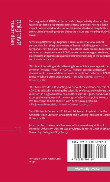 Introduction; S.Timimi& J.Leo.- PART ONE: ADHD AND THE MEDICAL MODEL.- ADHD: What Do We Really Know?; L.Furman.- ADHD and Genetics; J.Joseph.- A Critical Review of ADHD Neuroimaging Research; J.Leo & D.Cohen.- PART TWO: ADHD AND CULTURE.- Why Diagnosis of ADHD Has Increased So Rapidly In the West: A Cultural Perspective; S.Timimi.- Clinical Psychology and ADHD; C.Newnes.- ADHD in Australia: The Emergence of the Globalisation; B.Kean.- ADHD and Globalization; S.Timimi& B.Maitra.- Social Deprivation or Brain Dysfunction; N.Hart & L.Benassaya.- PART THREE: ADHD DRUG THERAPIES.- The Case Against Stimulants; G.E.Jackson.- The Manipulation of Data and Attitudes About ADHD; J.Leo& J.Lacasse.- The Deficiencies of Drug Treatment Research; D.Cohen, S.Hughes & D.J.Jacobs.- The Role of Diet and Nutrition in ADHD; B.Puri.- PART FOUR: ALTERNATIVE PARADIGMS FOR ADHD.- Mind Magic; J.Jureidini.- ADHD and Other Sins of Our Children; S.Sobo.- The Canary in the Coal Mine; C.Mercogliano.- 'Good' Science, Expectations, Villains, and Hope; T.Hartmann.