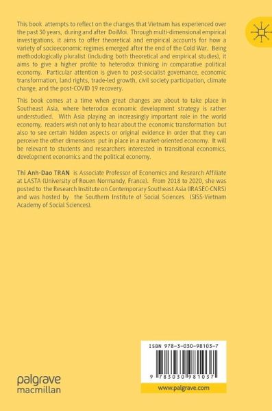 This book attempts to reflect on the changes that Vietnam has experienced over the past 30 years, during and after DoiMoi. Through multi-dimensional empirical investigations, it aims to offer theoretical and empirical accounts for how a variety of socioeconomic regimes emerged after the end of the Cold War. Being methodologically pluralist (including both theoretical and empirical studies), it aims to give a higher profile to heterodox thinking in comparative political economy. Particular attention is given to post-socialist governance, economic transformation, land rights, trade-led growth, civil society participation, climate change, and the post-COVID 19 recovery.