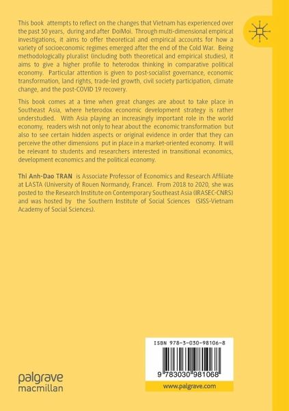 This book attempts to reflect on the changes that Vietnam has experienced over the past 30 years, during and after DoiMoi. Through multi-dimensional empirical investigations, it aims to offer theoretical and empirical accounts for how a variety of socioeconomic regimes emerged after the end of the Cold War. Being methodologically pluralist (including both theoretical and empirical studies), it aims to give a higher profile to heterodox thinking in comparative political economy. Particular attention is given to post-socialist governance, economic transformation, land rights, trade-led growth, civil society participation, climate change, and the post-COVID 19 recovery.