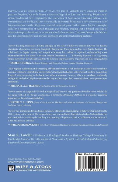 Baptism may be more important than you think. Virtually every Christian tradition practices baptism, but with diverse understandings of its form and meaning. Baptists (and similar traditions) have emphasized the restriction of baptism to confessing believers and immersion as the mode, and they have usually interpreted baptism as a post-conversion act of human obedience, rather than a sacramental means of grace. In this book, a Baptist theologian calls for a reformation of Baptist thought and practice, arguing that a biblical theology of baptism interprets baptism as a sacramental seal of conversion. The book develops the biblical case for this perspective and answers questions about its practical implications.