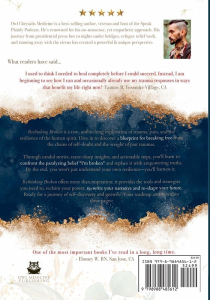 Rethinking Broken is a raw, unflinching exploration of trauma, pain, and the resilience of the human spirit. Dive in to discover a blueprint for breaking free from the chains of self-doubt and the weight of past traumas. Through candid stories, razor-sharp insights, and actionable steps, you'll learn to confront the paralyzing belief "I'm broken" and replace it with empowering truths. By the end, you won't just understand your own resilience-you'll harness it. ¿ Rethinking Broken offers more than inspiration; it provides the tools and strategies you need to, reclaim your power, re-write your narrative and re-shape your future. Ready for a journey of self-discovery and growth? Your roadmap awaits within these pages.