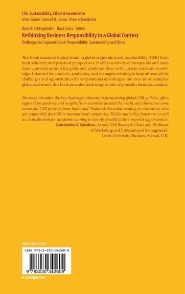 The Social Responsibility of Multinationals: From an Afterthought to Center Stage.- Part I.- Rethinking Global CSR.- The Role of CSR in International Policy Agendas.- Business Success Revisited: What Constitutes Business Success?.- Embedding CSR in Corporate Strategies.- CSR Initiatives.- Part II.- Regional CSR Perspectives.- CSR in the USA: A Historic Perspective on the Interplay Between Ideological, Political, and Economic Forces.- CSR in Egypt: Communication and Marketing Practices.- CSR in Germany: A European Perspective.- CSR in Poland: The Rise and Development of Corporate Social Responsibility.- CSR in India: Evolution, Models, and Impact.- CSR in Thailand: A Stakeholder's Perspective.- Part III.- CSR Policies and Practices in Different Countries.- Mandated CSR in India: Opportunities, Constraints, and the Road Ahead.- CSR in Government-Owned Enterprises in India: A Principal-Agent Perspective.- Sustainable Public-Private Partnership (PPP) Projects in Colombia.- The Buffering and Backfiring Effects of CSR Strategies During a Crisis: A US Perspective.- Part IV.- CSR Projects.- Under the Mango Tree: Sustainable Livelihood Approach to Poverty Reduction Through Beekeeping.- MiVana: Brewing Pleasure, Enhancing Equity, and Restoring Forests.- Early Childhood Care and Education: A Mainstay for CSR Investments.