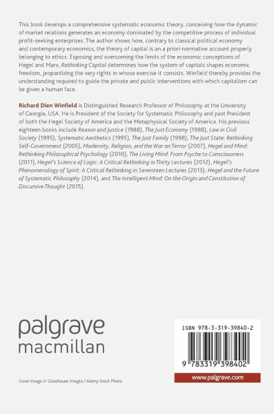 This book develops a comprehensive systematic economic theory, conceiving how the dynamic of market relations generates an economy dominated by the competitive process of individual profit-seeking enterprises. The author shows how, contrary to classical political economy and contemporary economics, the theory of capital is an a priori normative account properly belonging to ethics. Exposing and overcoming the limits of the economic conceptions of Hegel and Marx, Rethinking Capital determines how the system of capitals shapes economic freedom, jeopardizing the very rights in whose exercise it consists. Winfield thereby provides the understanding required to guide the private and public interventions with which capitalism can be given a human face.