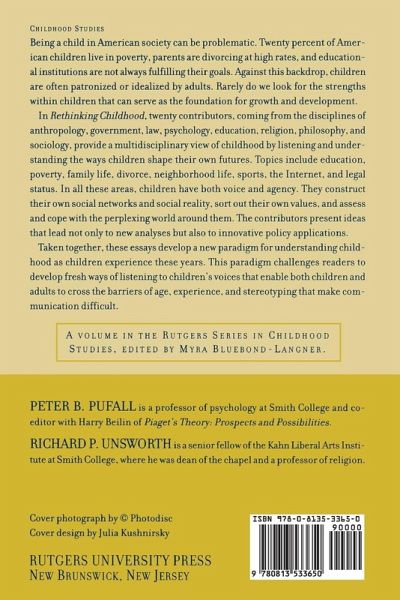 Being a child in American society can be problematic. In "Rethinking Childhood," 20 contributors from such disciplines as anthropology, government, education, and religion provide a multidisciplinary view of childhood by listening and understanding the ways children shape their own futures.