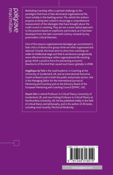 ANGÉLIQUE DU TOIT is a Lead Academic in Coaching and an international Executive Coach at Board Level in both the public and private sectors. She is the Managing Editor for the International Journal of Mentoring and Coaching and on the Advisory Board of the European Mentoring and Coaching Council (EMMC, UK). STUART SIM is retired Professor in Critical Theory, University of Sunderland, UK, and now Visiting Professor at Northumbria University. He has published widely in the field of critical theory and philosophy, and is the author of 26 books, including most recently The End of Modernity.
