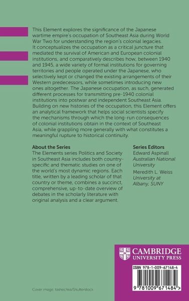This Element explores the significance of the Japanese wartime empire's occupation of Southeast Asia during World War Two for understanding the region's colonial legacies. It conceptualizes the occupation as a critical juncture that mediated the survival of American and European colonial institutions, and comparatively describes how, between 1940 and 1945, a wide variety of formal institutions for governing territories and people operated under the Japanese, who selectively kept or changed the existing arrangements of their Western predecessors, while sometimes introducing new ones altogether. The Japanese occupation, as such, generated different processes for transmitting pre-1940 colonial institutions into postwar and independent Southeast Asia. Building on new histories of the occupation, this Element offers an analytical framework that helps social scientists specify the mechanisms through which the long-run consequences of colonial institutions obtain in the context of Southeast Asia, while grappling more generally with what constitutes a meaningful rupture to historical continuity.