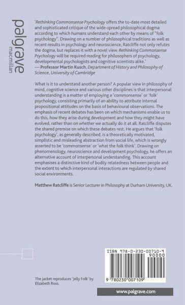 'Rethinking Commonsense Psychology offers the to-date most detailed and sophisticated critique of the wide-spread philosophical dogma according to which humans understand each other by means of 'folk psychology'. Drawing on a number of philosophical traditions as well as recent results in psychology and neuroscience, Ratcliffe not only refutes the dogma, but replaces it with a novel view. Rethinking Commonsense Psychology will be required reading for philosophers of psychology, developmental psychologists and cognitive scientists alike.' - Professor Martin Kusch, Department of History and Philosophy of Science, University of Cambridge