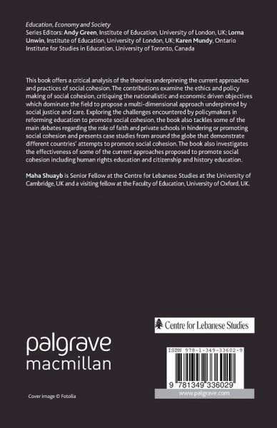 Foreword Acknowledgements Abbreviations Notes on Contributors Introduction; M.Shuayb PART I: THE THEORY AND POLITICS OF SOCIAL COHESION From Social Cohesion to Social Justice and Care in Education: Re-visiting the Theory and Practice; M.Shuayb Education, Social Cohesion and Human Rights; H.Starkey Multicultural Citizenship and Social Cohesion: Reflecting on the Case Study of England; D.Kiwan The Historical Legacy and Political Implications of State and Sectarian Schools in Lebanon; M.Farha Education for Social Cohesion in Lebanon: The Educational Reform Experiment in the Wake of the Lebanese War; M.Abou Assali Education as a Basic Means in Building Societal Cohesion in Lebanon: An Unfinished Task; N.Frayha Common School or Common System? R.Pring PART II: MEANS FOR PROMOTING SOCIAL COHESION: EVIDENCE FROM THE FIELD Building Social Inclusion and Community Cohesion: The Role of the Citizenship-rich School; T.Breslin Current Models and Approaches to Social Cohesion in Secondary Schools in Lebanon; M.Shuayb Civics Re-examined: The Gap Between Civic Education and Active Citizenship in Lebanon; B.Akar Promoting a Rights-based Perspective in Initial Teacher Education; L.Jerome & A.McCallum Achieving Social Cohesion in Europe through Education: A Success Story; R.García Carrión School Linking as a means of Fostering Community Cohesion; S.Ali The Power of Language: How Small Shifts in Language Create Big Shifts in Relationships and Behaviour: A Guide for Teachers, Students, Leaders and Parents; A.Asseily Teaching and Learning History for Strengthening Reconciliation and Peace Building Process: Experience of the Council of Europe; T.Minkina-Milko Conclusion; M.Shuayb Index