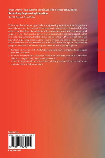 Introduction and Motivation.- The CDIO Approach.- The CDIO Syllabus: Learning Outcomes for Engineering Education.- Integrated Curriculum Design.- Design-Implement Experiences and Engineering Workspaces.- Teaching and Learning.- Student Learning Assessment.- Adapting and Implementing a CDIO Approach.- Program Evaluation.- Historical Accounts of Engineering Education.- Outlook.