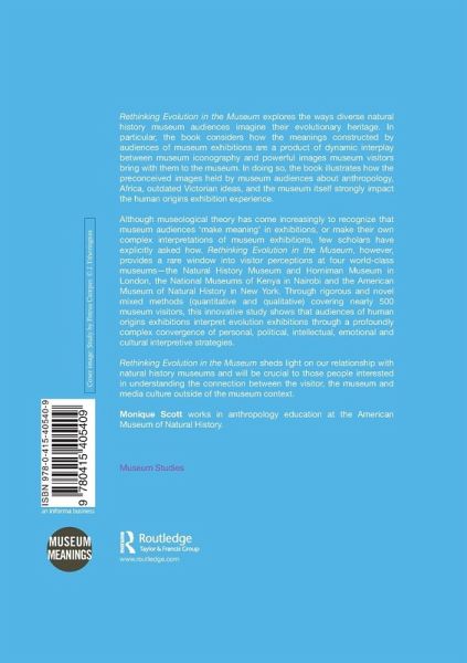 Although museological theory has come increasingly to recognize that museum audiences 'make meaning' in exhibitions, or make their own complex interpretations of museum exhibitions, few scholars have explicitly asked how. Rethinking Evolution in the Museum, however, provides a rare window into visitor perceptions at four world-class museums-the Natural History Museum and Horniman Museum in London, the National Museums of Kenya in Nairobi and the American Museum of Natural History in New York. Through rigorous and novel mixed methods (quantitative and qualitative) covering nearly 500 museum visitors, this innovative study shows that audiences of human origins exhibitions interpret evolution exhibitions through a profoundly complex convergence of personal, political, intellectual, emotional and cultural interpretive strategies.
