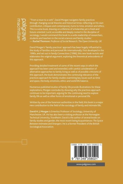 "From a noun to a verb", David Morgan navigates family practices through changing social theories and historical times: reflecting on his own contribution, critiques and contemporary turns to time, emotion and ethics. This is a wise book, drawing on a lifetime of scholarship yet is fresh and future-oriented. Lucid, accessible and deeply rooted in the discipline of sociology, I would commend this book to a wide readership of researchers, students and teachers in the social sciences and family studies.' - Rachel Thomson, Professor of Social Research, The Open University, UK