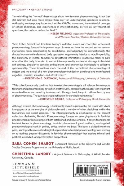 1. Introduction: The Water We Swim In: Why Feminist Phenomenology Today? Sara Cohen Shabot and Christinia Landry PART I: FOUDATIONAL PERSPECTIVES 2. Subject and Structure in Feminist Phenomenology: Re-reading Beauvoir with Butler Beata Stawarska 3. Gender Essentialism and Eidetic Inquiry Gayle Salamon 4. Intersectional Ambiguity and the Phenomenology of #BlackGirlJoy Qrescent Mali Mason 5. Doing Time in a For-Profit Space: Re-negotiating Identity in the Prison-Industrial Complex Gail Weiss PART II: ETHICAL AND POLITICAL PERSPECTIVES 6. Towards a Feminist Phenomenological Ethics Christinia Landry 7. Phenomenology and Politics: Injustice and Prejudices Christina Schües 8. Hannah Arendt, Gender, and Political Judgment: A Phenomenological Critique Sonia Kruks 9. Fat Temporality, Crisis Phenomenology, and the Politics of Refusal Kristin Rodier PART III: EMBODIED PERSPECTIVES 10. Edible Mothers, Edible Others: Breastfeeding as Ambiguity Sara Cohen Shabot 11. On the E