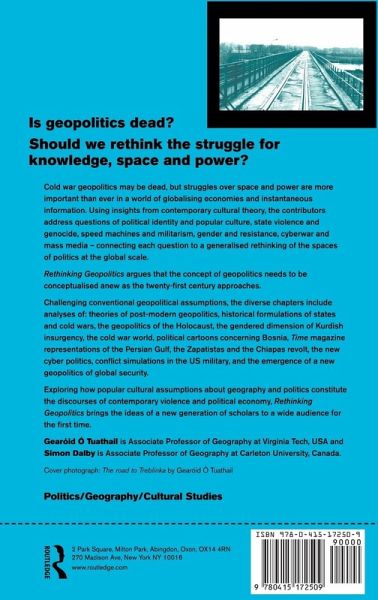 Exploring how popular cultural assumptions about geography and politics constitute the discourses of contemporary violence and political economy, Rethinking Geopolitics brings the ideas of a new generation of scholars to a wide audience for the first time. Geroid O. Tuathail, Virginia Tech, USA; Anders Stephanson, Columbia University, USA, Carlo Bonura University of Washington, USA; Kim Rygiel, Carleton University, Canada; Argues that we must rethink the struggle for knowledge, space and power and that the concept of geopolitics needs to be reconceptualized for the twenty-first century.