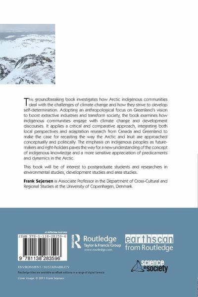 This ground-breaking book investigates how Arctic indigenous communities deal with the challenges of climate change and how they strive to develop self-determination. Adopting an anthropological focus on Greenland's vision to boost extractive industries and transform society, the book examines how indigenous communities engage with climate change and development discourses. It applies a critical and comparative approach, integrating both local perspectives and adaptation research from Canada and Greenland to make the case for recasting the way the Arctic and Inuit are approached conceptually and politically. The emphasis on indigenous peoples as future-makers and right-holders paves the way for a new understanding of the concept of indigenous knowledge and a more sensitive appreciation of predicaments and dynamics in the Arctic. This book will be of interest to post-graduate students and researchers in environmental studies, development studies and area studies.