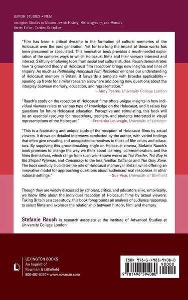 Taking early 21st century Britain as a case study, Rethinking Holocaust Film Reception: A British Case Study presents an intervention into the scholarship on the representation of the Holocaust on film. Based on a study of audience responses to select films, Stefanie Rauch demonstrates that the reception of films about the Holocaust is a complex process that we cannot understand through textual analysis alone, but by also paying attention to individual reception processes. This book restores the agency of viewers and takes seriously their diverse responses to representations of the Holocaust. It demonstrates that viewers' interpretative resources play an important role in film reception. Viewers regard Holocaust films as a separate genre that they encounter with a set of expectations. The author highlights the implications of Britain's lessons-focused approach to Holocaust education and commemoration and addresses debates around the supposed globalization of Holocaust memory by unpacking the peculiar Britishness of viewers' responses to films about the Holocaust. A sense of emotional connection or its absence to the Holocaust and its memory speaks to divisions along ethnic, generational, and national lines.