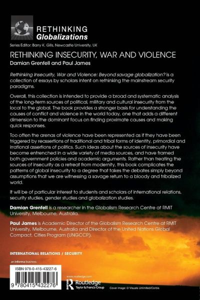 Rethinking Insecurity, War and Violence: Beyond Savage Globalization? is a collection of essays by scholars intent on rethinking the mainstream security paradigms. Overall, this collection is intended to provide a broad and systematic analysis of the long-term sources of political, military and cultural insecurity from the local to the global. The book provides a stronger basis for understanding the causes of conflict and violence in the world today, one that adds a different dimension to the dominant focus on finding proximate causes and making quick responses Too often the arenas of violence have been represented as if they have been triggered by reassertions of traditional and tribal forms of identity, primordial and irrational assertions of politics. Such ideas about the sources of insecurity have become entrenched in a wide variety of media sources, and have framed both government policies and academic arguments. Rather than treating the sources of insecurity as a retreat from modernity, this book complicates the patterns of global insecurity to a degree that takes the debates simply beyond assumptions that we are witnessing a savage return to a bloody and tribalized world. It will be of particular interest to students and scholars of international relations, security studies, gender studies and globalization studies.