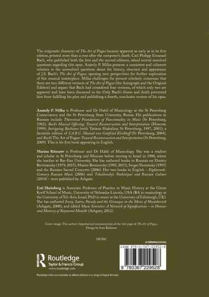 The enigmatic character of The Art of Fugue became apparent as early as in its first edition, printed more than a year after the composer's death. Carl Philipp Emanuel Bach, who published both the first and the second editions, raised several unsolved questions regarding this opus. Anatoly P Milka presents a consistent and coherent solution to the unresolved questions about the history, structure and appearance of J.S. Bach's The Art of Fugue, opening new perspectives for further exploration of this musical masterpiece. Milka challenges the present scholarly consensus that there exist two different versions of The Art of Fugue (the Autograph and the Original Edition) and argues that Bach had considered four versions, of which only two are apparent and have been discussed so far. Only Bach's illness and death prevented him from fulfilling his plan and publishing a fourth, conclusive version of his opus.