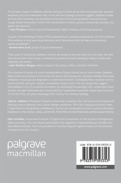 This collection of essays is a critical reexamination of Joyce's famed book of short stories, Dubliners. Despite the multifaceted critical attention Dubliners has received since its publication more than a century ago, many readers and teachers of the stories still rely on and embrace old, outdated readings that invoke metaphors of paralysis and stagnation to understand the book. Challenging these canonical notions about mobility, paralysis, identity, and gender in Joyce's work, the ten essays here suggest that Dubliners is full of incredible movement. By embracing this paradigm shift, current and future scholars can open themselves up to the possibility of seeing that movement, maybe even noticing it for the first time, can yield surprisingly fresh twenty-first-century readings.