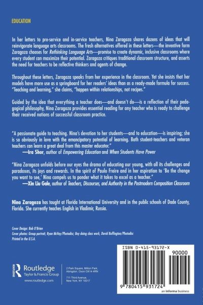 In Rethinking Language Arts: Passion and Practice, Second Edition, author Nina Zaragoza uses the form of letters to her students to engage pre-service teachers in reevaluating teaching practices, thus bringing to life a vision of an alternative classroom environment in which the teacher is the prime mover and creative leader. Zaragoza discusses and explains the need for teachers to be decision makers, reflective thinkers, political beings, and agents of social change in order to create a positive and inclusive classroom setting. This book is both a critical text that deconstructs the way language arts are traditionally taught in our schools as well as a visionary text with clear, no-nonsense directions on how to provide much needed change in our schools.
