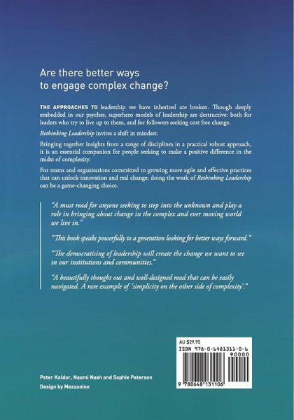 The models of leadership we have inherited are broken. Though deeply embedded in our psyches, superhero models of leadership are destructive: both for leaders who try to live up to them, and for followers seeking cost free change. - Rethinking Leadership, 2017 Rethinking Leadership has been written for people work in the midst of complexity and are seeking to make a positive difference. It is written for teams that are unsatisfied with simplistic solutions and leaving it up to superhero leaders. For organisations committed to growing a working culture that is agile and collaborative. The transition away from classical notions of leadership isn't an easy one to make, especially within structures that were designed for maintaining the status quo. Offering leadership that is authentic, sustainable and has a lasting impact requires tackling many challenges. This book is intended to be a companion on the journey, providing a robust theoretical foundation for how we got here, and why we need to change. As well as practical insights that can be implemented by individuals and teams as they make the shift. No matter who you are, an individual or a team, beginning the work of Rethinking Leadership, is an essential task which will unlock latent capacity, focus your energy and increase the resources we all have to face the challenges ahead. Regardless of where you sit in your organisation: frontline delivery, middle management or executive responsibility, your creativity and perspective is essential in this process. The task is two-fold, to discover a fresh vision for effective leadership and to build the capacity of everyone to live it out. Rethinking Leadership provides a sound platform for doing this work, by taking readers through four key questions: What are the challenges we face? How can we build effective leadership for complex times? How can we develop agility with ongoing change? How can we each contribute authentically and sustainably? For teams and organisations committed¿to growing more agile and effective practices that can unlock innovation and real change, doing the work of Rethinking Leadership can be a game-changing choice.