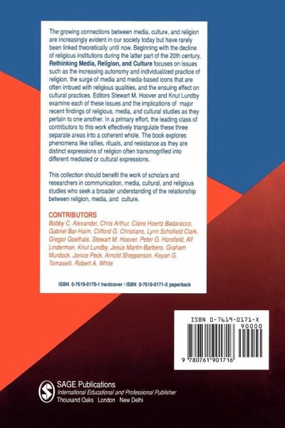 PART ONE: ANALYSIS OF MEDIA, RELIGION, AND CULTURE Introduction - Stewart M Hoover and Knut Lundby Setting the Agenda At the Intersection of Media, Culture, and Religion - Lynn Schofield Clark and Stewart M Hoover A Bibliographical Essay Religion and Media in the Construction of Cultures - Robert A White Technology and Triadic Theories of Mediation - Clifford G Christians PART TWO: MEDIA, RELIGION, AND CULTURE: CONTEMPORARY SOCIETY The Re-Enchantment of the World - Graham Murdock Religion and the Transformations of Modernity Mass Media as a Site of Resacralization of Contemporary Cultures - Jesús Martín-Barbero Escape from Time - Gregor Goethals Ritual Dimensions of Popular Culture The Dispersed Sacred - Gabriel Bar-Haim Anomie and the Crisis of Ritual The Web of Collective Representations - Knut Lundby PART THREE: MEDIA, RELIGION, AND CULTURE: CHANGING INSTITUTIONS Changes in Religion in Periods of Media Converegnce - Peter G Horsfield Media, Meaning and Method in Religious Studies - Chris Arthur Televangelism - Bobby C Alexander Redressive Ritual within a Larger Social Drama Resistance through Mediated Orality - Keyan G Tomaselli and Arnold Shepperson PART FOUR: MEDIA, RELIGION, AND CULTURE: INDIVIDUAL PRACTICE Psychologized Religion in a Mediated World - Janice A Peck A Utopian on Main Street - Claire Hoertz Badaracco Making Sense of Religion in Television - Alf Linderman Media and the Construction of the Religious Public Sphere - Stewart M Hoover Summary Remarks - Knut Lundby and Stewart M Hoover Mediated Religion