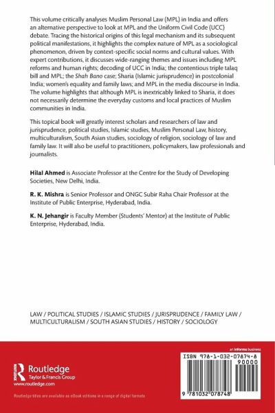 This topical book will greatly interest scholars and researchers of law and jurisprudence, political studies, Islamic studies, Muslim Personal Law, history, multiculturalism, South Asian studies, sociology of religion, sociology of law and family law. It will also be useful to practitioners, policymakers, law professionals and journalists.