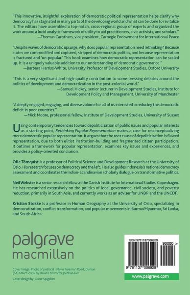 Rethinking Popular Representation starts out from the deep concern with contemporary tendencies towards depoliticization of public issues and popular interests. It argues that the root cause of this is flawed representation, due to both elitist institution building and fragmented citizen participation. Hence the book makes a case for the need to rethink more democratic popular representation. Toward this end, the book outlines an overarching analytical framework for popular representation, examines key theoretical issues and empirical experiences of popular representation, and provides a policy-oriented conclusion.