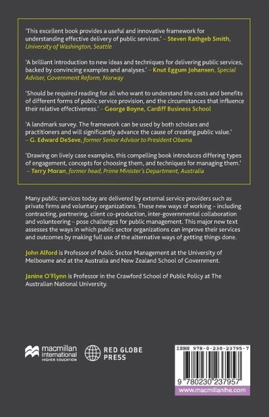 Winner of the 2014 Academy of Management Public-Nonprofit (PNP) Division Best Book Award Many public services today are delivered by external service providers such as private firms and voluntary organizations. These new ways of working - including contracting, partnering, client co-production, inter-governmental collaboration and volunteering - pose challenges for public management. This major new text assesses the ways in which public sector organizations can improve their services and outcomes by making full use of the alternative ways of getting things done.