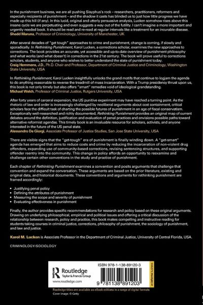There are visible signs that the "get-tough" era of punishment is finally winding down. A "get-smart" agenda has emerged that aims to reduce costs and crime by reducing the incarceration of non-violent drug offenders, expanding use of community-based corrections, revising sentencing structures, and supporting offender re-entry into the community. This change in policy affords an opportunity to re-examine and challenge certain other conventions in the study and practice of punishment. Each chapter of Rethinking Punishment examines a convention and posits arguments that challenge that convention and expand the conversation. These arguments are based on the prior literature, existing and original data, and historical documents. These conventions and arguments for rethinking punishment are framed accordingly: Justifying Penal Policy Defining the Attributes of Punishment Measuring the Scope and Severity of Punishment Evaluating Effectiveness in Punishment Finally, the author provides specific recommendations for research and policy based on these original arguments. Drawing on underlying philosophical, empirical and political issues and offering a critical discussion of the relationship between research, policy and practice, this book makes compelling and instructive reading for students taking courses in criminal justice, corrections, philosophy of punishment, the sociology of punishment, and law and justice.