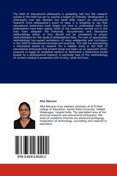 The field of educational philosophy is spreading fast but the research activity in this field has yet to assume a height of intensity. Development in philosophy over last decades has made little impact on educational research. From philosopher s point of view, it is tempting to say that educational researchers have simply not tried to understand what the philosophers have been saying. Most of the researches carried out in this area have adopted the historical, documentary and descriptive methodology which, in fact, should not be considered as proper methodologies for the study of philosophical data. The lack of appropriate methodology has caused persistence of many ambiguities and confusions in the field of educational concepts and practices. This calls for ascertaining a theoretical model of research for a reliable study in the field of educational philosophy.The present book has taken up an approach which purports to apply an analytical method to determine a theoretical model proper to a philosophical research. A particular type of the methodology of content analysis is presented with its why, what and how.