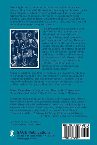 `A bold and imaginative attempt to reorganize and restructure social theory's map of sexuality, Diane Richardson simultaneously contributes to a renewal of feminist theory and to the development of a new field - sexual citizenship. By approaching the question of modern sexuality through queer theory, citizenship and social movements relating to AIDS, she has indeed contributed to re-thinking sexuality. ... A balanced but forceful defence of feminist theory' - Bryan S Turner, University of Cambridge