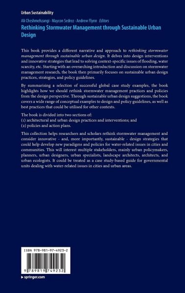 This collection helps researchers and scholars rethink stormwater management and consider innovative - and, more importantly, sustainable - design strategies that could help develop new paradigms and policies for water-related issues in cities and communities. This will interest multiple stakeholders, mainly urban policymakers, planners, urban designers, urban specialists, landscape architects, architects, and urban ecologists. It could be treated as a case study-based guide for governmental units dealing with water related issues in cities and urban areas.