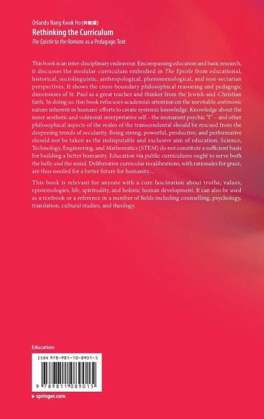 This book is an inter-disciplinary endeavour. Encompassing education and basic research, it discusses the modular-curriculum embodied in The Epistle from educational, historical, sociolinguistic, anthropological, phenomenological, and non-sectarian perspectives. It shows the cross-boundary philosophical reasoning and pedagogic dimensions of St. Paul as a great teacher and thinker from the Jewish-and-Christian faith. In doing so, this book refocuses academia's attention on the inevitable antimonic nature inherent in humans' efforts to create systemic knowledge. Knowledge about the inner aesthetic and volitional-interpretative self - the immanent psychic "I" - and other philosophical aspects of the realm of the transcendental should be rescued from the deepening trends of secularity. Being strong, powerful, productive, and performative should not be taken as the indisputable and exclusive aim of education. Science, Technology, Engineering, and Mathematics (STEM) do not constitute a sufficient basis for building a better humanity. Education via public curriculums ought to serve both the belly and the mind. Deliberative curricular recalibrations, with rationales for grace, are thus needed for a better future for humanity....