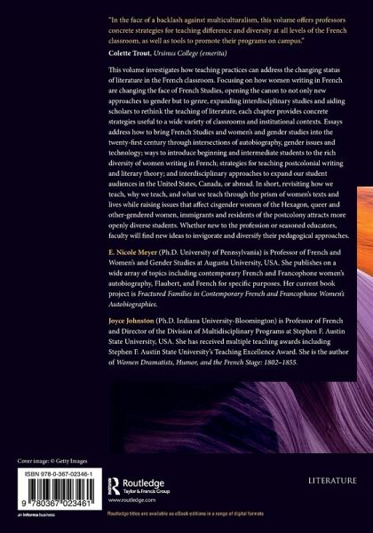 Focusing on how women writing in French are changing the face of French Studies, opening the canon to new approaches to gender and genre, expanding interdisciplinary studies and aiding scholars to rethink the teaching of literature, this volume provides teaching strategies useful to the classrooms and institutions.