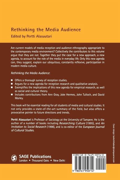 Pertti Alasuutari provides a state-of-the-art summary of the field of audience research. With contributions from Ann Gray, Joke Hermes, John Tulloch and David Morley, a case is presented for a new agenda to account for the role of the media in everyday life.
