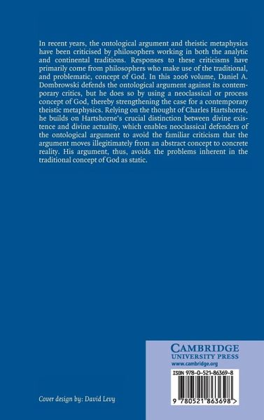 In recent years, the ontological argument and theistic metaphysics have been criticised by philosophers working in both the analytic and continental traditions. Responses to these criticisms have primarily come from philosophers who make use of the traditional, and problematic, concept of God. In this volume, Daniel A. Dombrowski defends the ontological argument against its contemporary critics, but he does so by using a neoclassical or process concept of God, thereby strengthening the case for a contemporary theistic metaphysics. Relying on the thought of Charles Hartshorne, he builds on Hartshorne's crucial distinction between divine existence and divine actuality, which enables neoclassical defenders of the ontological argument to avoid the familiar criticism that the argument moves illegitimately from an abstract concept to concrete reality. His argument, thus, avoids the problems inherent in the traditional concept of God as static.