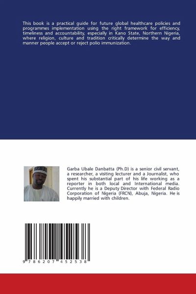 This book is a practical guide for future global healthcare policies and programmes implementation using the right framework for efficiency, timeliness and accountability, especially in Kano State, Northern Nigeria, where religion, culture and tradition critically determine the way and manner people accept or reject polio immunization.