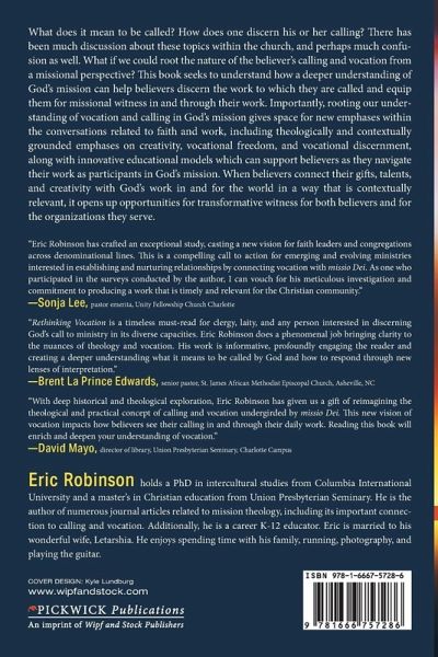 What does it mean to be called? How does one discern his or her calling? There has been much discussion about these topics within the church, and perhaps much confusion as well. What if we could root the nature of the believer's calling and vocation from a missional perspective? This book seeks to understand how a deeper understanding of God's mission can help believers discern the work to which they are called and equip them for missional witness in and through their work. Importantly, rooting our understanding of vocation and calling in God's mission gives space for new emphases within the conversations related to faith and work, including theologically and contextually grounded emphases on creativity, vocational freedom, and vocational discernment, along with innovative educational models which can support believers as they navigate their work as participants in God's mission. When believers connect their gifts, talents, and creativity with God's work in and for the world in a way that is contextually relevant, it opens up opportunities for transformative witness for both believers and for the organizations they serve.